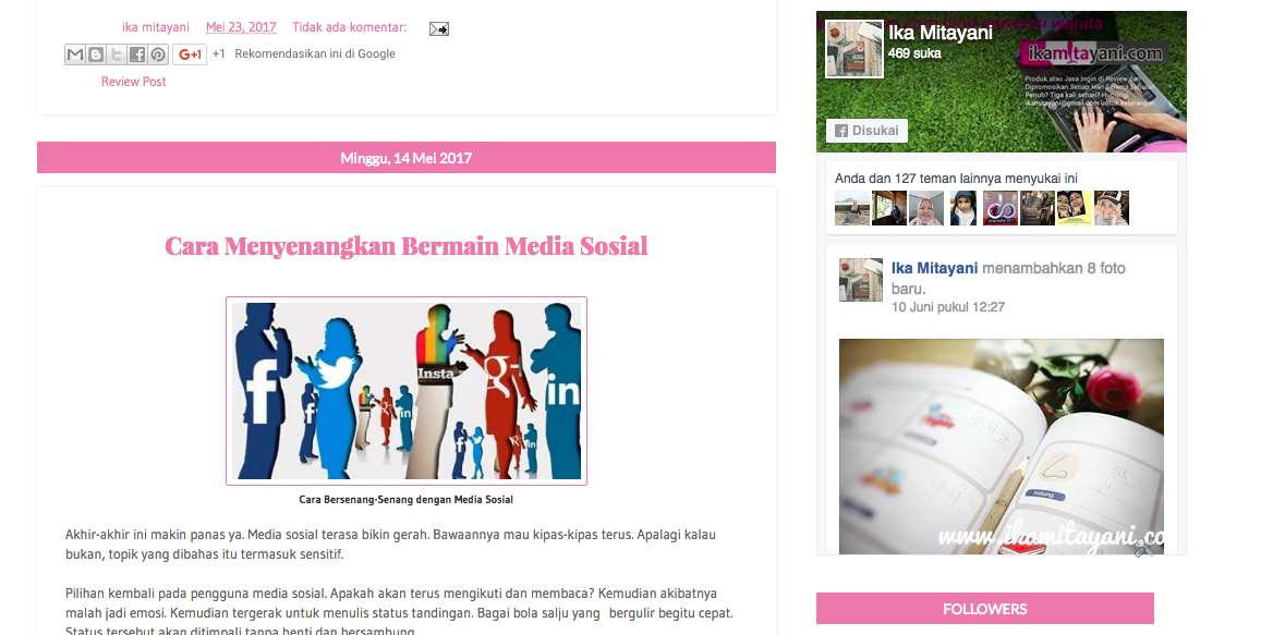 Berdasarkan pengalaman, banyak yang menemukan saya melalui fanpage ini. Orang lebih mudah menghubungi saya melalui fanpage. Kok bisa? Pertama ya karena saya memasang plugin fanpage ini di blog. Mereka kemudian like. Lalu kalau tertarik mereka akan lanjut. Mereka jadi tahu update blog saya yang terbaru.