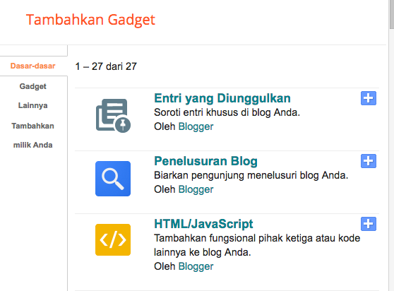 4. Klik tambahkan gadget lalu HTML/Javascript