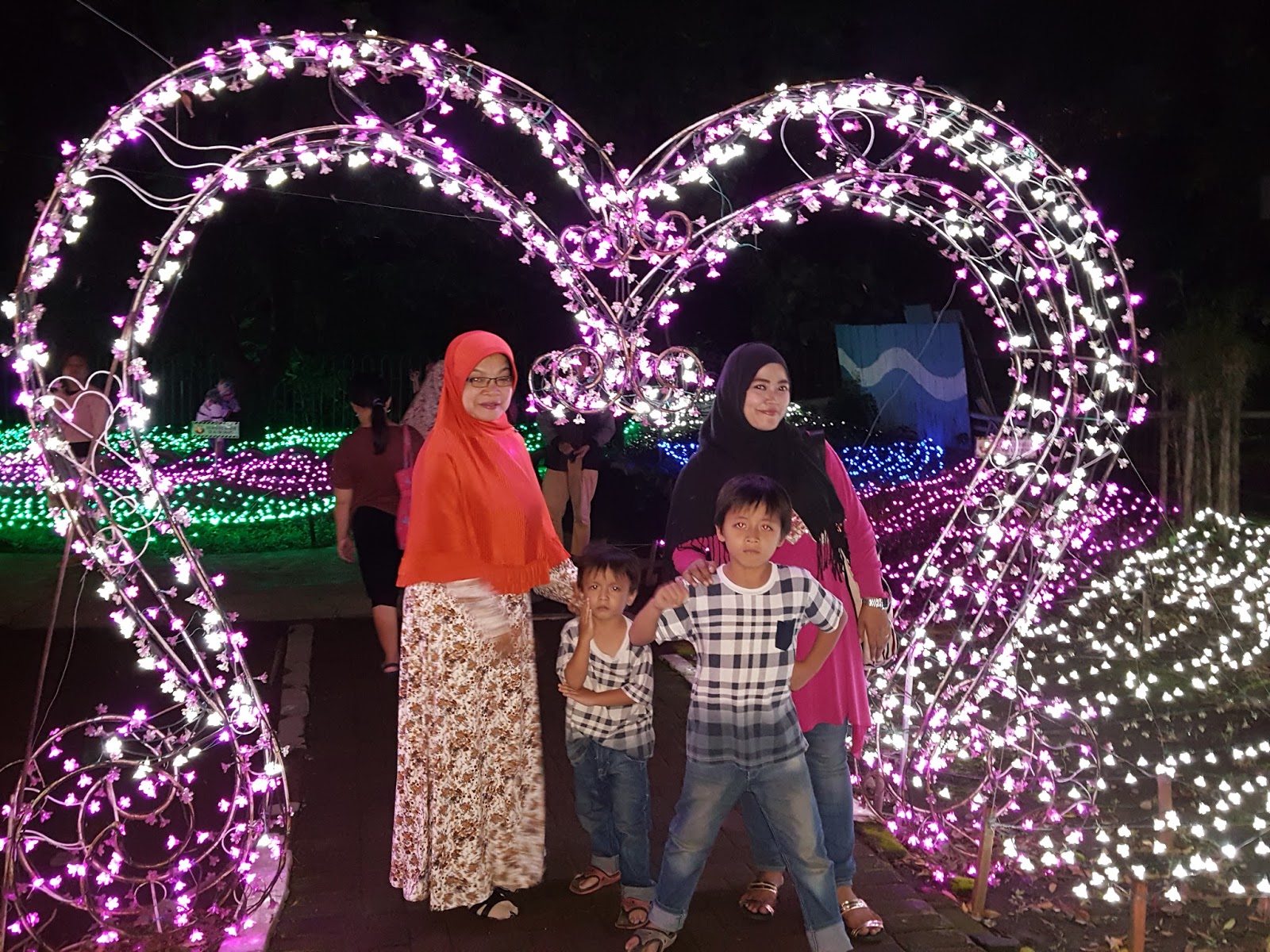 Untuk masuk ke wahana Taman Pelangi Lampion ini, setiap pengunjung hanya dipungut Rp 15.000,00. Itu untuk dewasa ya. Kalau anak-anak separuh harga. Jadi total untuk masuk adalah Rp 60.000,00. Terdiri dari saya, suami, mama, anak-anak.